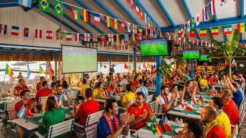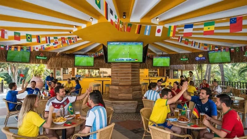 Blue Beach Club a la carte restaurant with multiple screens for match viewing.
