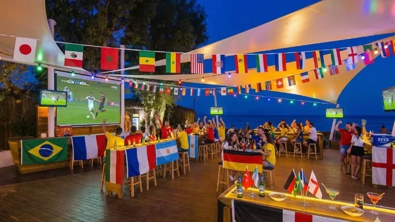 Open air bar & night club with outdoor screens for match viewing.